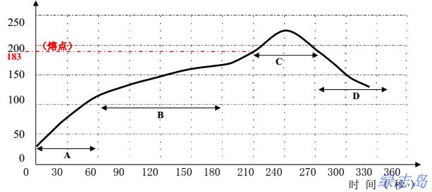 ? 上述溫度曲線是指焊點(diǎn)處的實(shí)際溫度,而非回焊爐的設(shè)定加熱溫度(不同)