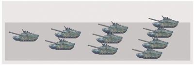 今年參加閱兵的坦克部隊(duì)來自北京軍區(qū)第38集團(tuán)軍。在所有參閱的裝備方隊(duì)里,它們將第一個(gè)駛過天安門廣場。和其他方隊(duì)使用的矩形編隊(duì)不同,坦克方隊(duì)以箭形編隊(duì)前行。這次參閱的坦克為99A式坦克,是99式坦克的改進(jìn)型,性能與99式坦克相比有本質(zhì)性的提升。坦克方隊(duì)受閱長徑達(dá)112.6米,每行駛100米,駕駛員需要調(diào)整方向48次才能保證騎線,展現(xiàn)的可謂是“指尖上的舞蹈”。
